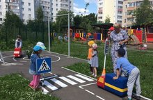 Старший инспектор пропаганды БДД ОАО и ПБДД отдела ГИБДД УМВД России по г. Казани старший лейтенант полиции Раскатов Александр Владимирович и ведущий специалист ГБУ "Безопасность дорожного движения" отдела профилактики территориального управления в г. Казани Хайруллина Сагдия Салиховна организовали познавательную игру на прогулке. Дети повторили правила дорожного движения.