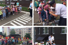 Старший инспектор пропаганды БДД ОАО и ПБДД отдела ГИБДД УМВД России по г. Казани старший лейтенант полиции Раскатов Александр Владимирович и ведущий специалист ГБУ "Безопасность дорожного движения" отдела профилактики территориального управления в г. Казани Хайруллина Сагдия Салиховна организовали познавательную игру на прогулке. Дети повторили правила дорожного движения. Им были вручены подарки.