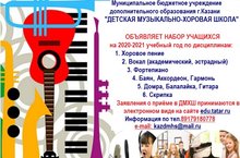 Муниципальное бюджетное учреждение дополнительного образования г.Казани "Детская музыкально-хоровая школа" объявляет набор учащихся на 2020-2021 учебный год
