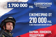 Вступай в армию Победы! Ведется набор на военную службу по контракту. Единовременная выплата до 1.7 млн.рублей При заключении контракта в Татарстане . Заработанная плата от 210 тысяч рублей ежемесячно в зоне специальной военной операции.Номер телефона для связи +7 (843) 2231900, (доб. 86207)