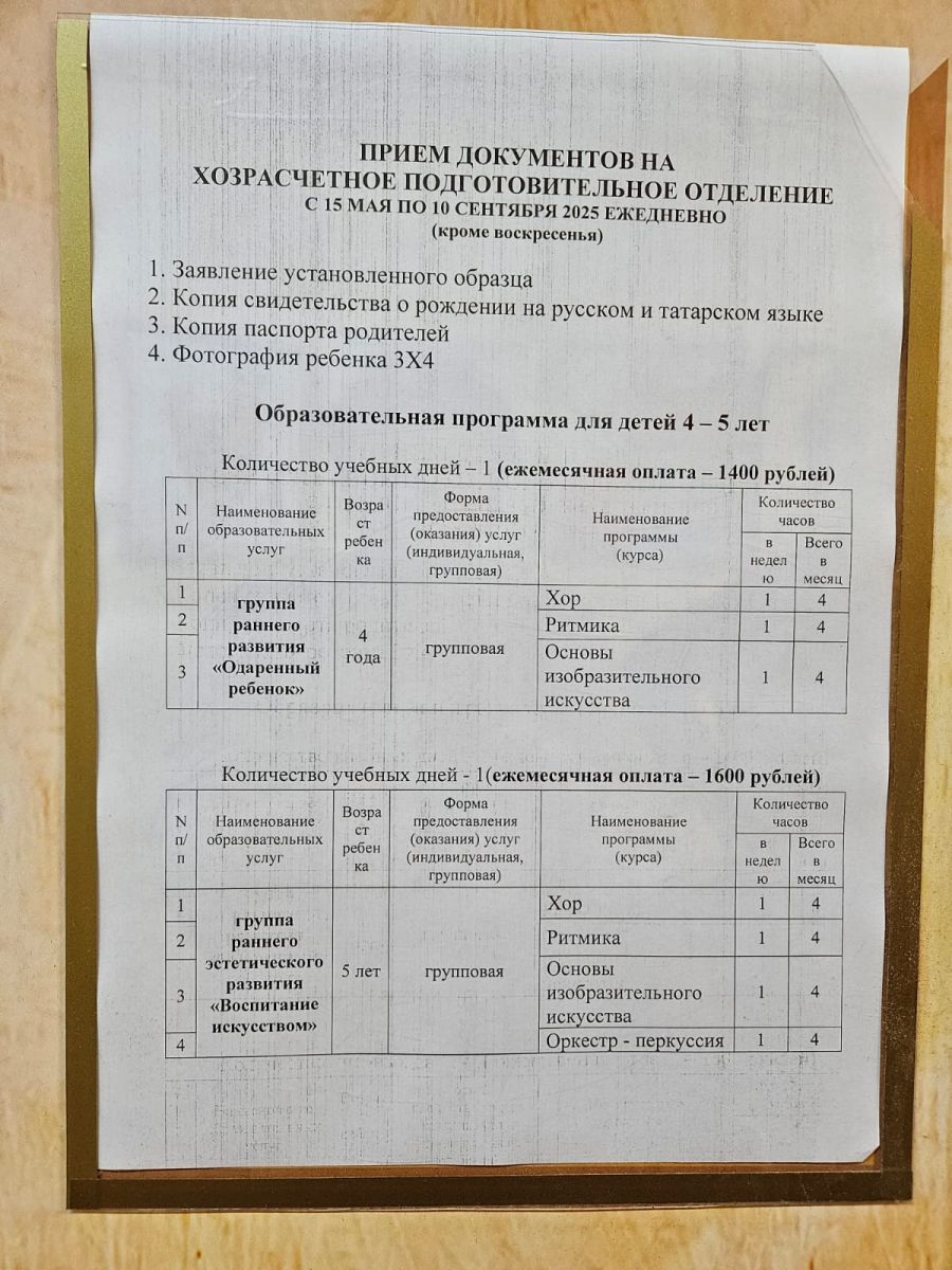 Детская школа искусств N15 продолжает набор детей 4-х, 5' ти лет на обучение по программе "Раннее эстетическое образование". Хор, ритмика с элементами танца, оркестр и основы живописи раскроют творческий потенциал вашего ребёнка. Детей обучают преподаватели с большим опытом. Обучение платное. Занимаемся по субботам. Первое занятие состоится 21 сентября. По всем вопросам звонить по телефону 2 68 00 57 20.09.2024