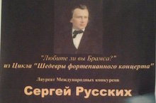 18 февраля 2016 года в 15 часов в зале ДМШ № 5 состоялся концерт Лауреата Международного конкурса Сергея Русских «Любите ли вы Брамса?» из Цикла «Шедевры фортепианного концерта». Прозвучал Концерт для фортепиано с оркестром № 1 d-moll, ор. 15 Брамса и Соната для фортепиано № 7 B dur op. 83 Прокофьева. Партию оркестра исполняла Лауреат Международного конкурса Анна Русских.