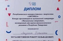 Сегодня в ДМШ № 3 им. Р.Яхина в рамках Республиканского конкурса детского творчества «100//ЛИЦА» состоялся КОНКУРС ПРЕЗЕНТАЦИЙ по музыкальной литературе учащихся ДМШ и ДШИ. Ученик нашей школы Мухаметзянов Роберт стал лауреатом 2 степени. Тема конкурса: «Музыкальные открытия». Роберт представил проект «Эхо небес», раскрывающий историю создания «божественно чудного инструмента» - челесты, который в переводе с итальянского означает «небесный». В своем выступлении Роберт описал не только строение и механизм челесты, но и представил интересный рассказ об этом инструменте - его звучании и использовании в произведениях различных композиторов. Поздравляем! Желаем дальнейших творческих побед и открытий!