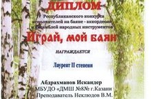 Республиканский конкурс исполнителей на баяне-аккордеоне и ансамблей народных инструментов "Играй,мой баян" Абдрахманов Искандер ДИПЛОМ Лауреата II степени.
