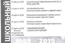 Завершится фестиваль отчётным концертом "Школа в кругу друзей" на сцене Большого концертного зала им. С.Сайдашева 27 марта в 18.30.В рамках фестиваля состоится сольный концерт Айдара Валиева, выпускника школы 2001 г., ныне солиста Государственного оркестра народных инструментов РТ, а также Софии Калимуллиной, бывшей ученицы ДМШ8, ныне ССМШ при КГК им. Н.Г.Жиганова. -