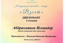Международный фестиваль-конкурс "Взлет" Абдрахманов Искандер Дипломант I степени.