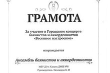 15 марта в зале гимназии №21 состоялся отчётный концерт народного отдела. Солисты, дуэты, ансамбли: баянистов, гитаристов, домристов, смешанный ансамбль, оркестр народных инструментов! Яркий запоминающийся праздник народной музыки