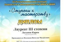 III Республиканский конкурс баянистов и аккордеонистов ДМШ и ДШИ "Ступени к мастерству"Латыпов Карим ДИПЛОМ Лауреата III степени