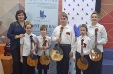 Ансамбль домристов «Озорные струнки» в составе Варёнова Артёма, Охотниковой Ангелины, Ахуновой Анастасии, Барашкова Алексея -