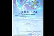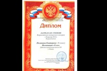 Награждена ДИПЛОМОМ Лауреата III степени Полянина Екатерина за участие во Всероссийском юношеском конкурсе "Энжелэр-2014" в номинации "Соло".