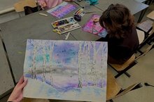 Материалы для рисования приносить с собой на живопись: простые карандаши, ластик, кисти (белка № 3, 8, 10), палитра, акварельные краски (акварель), баночка для воды (непроливайка), бумага для акварели А3, скотч, вторая обувь.