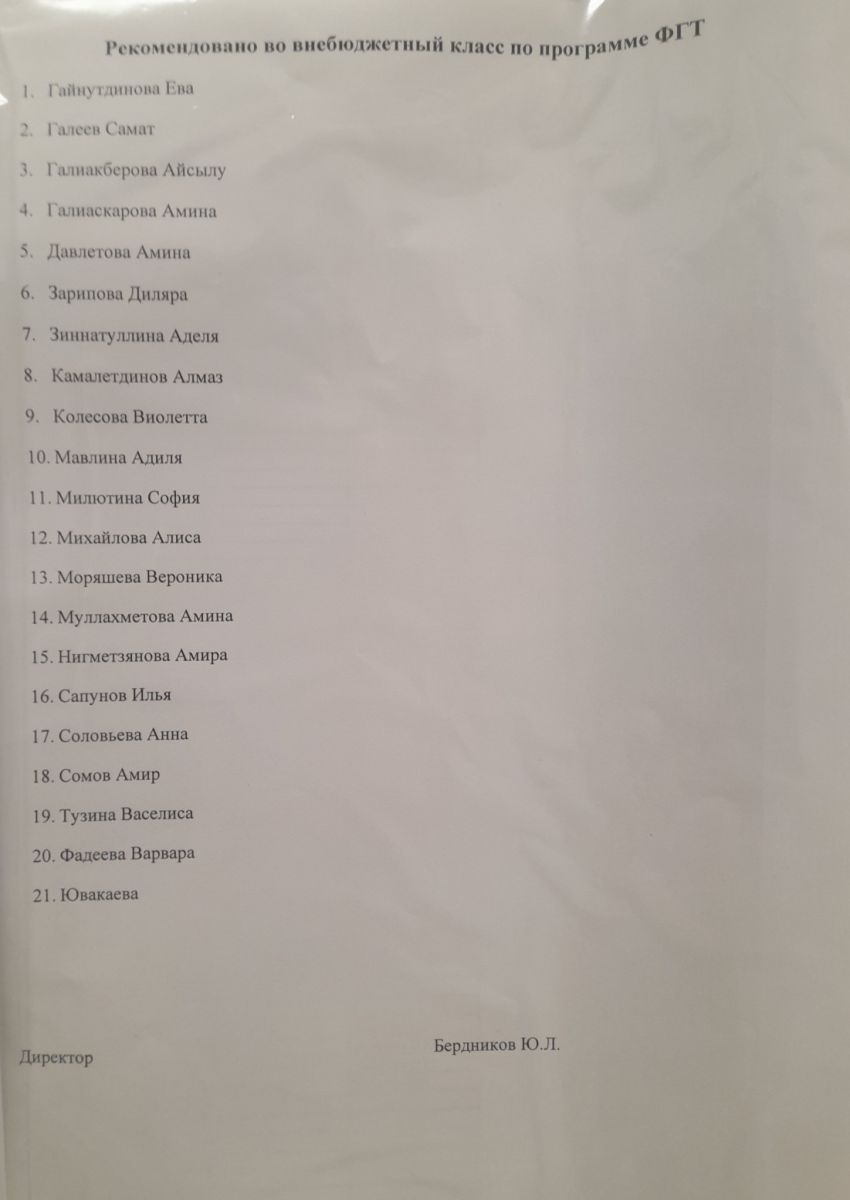 Список рекомендованных к поступлению на внебюджет в 1 класс