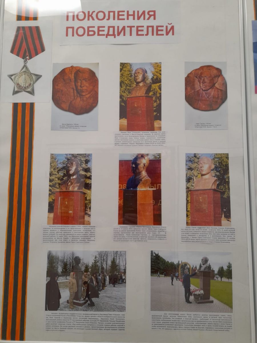 Стенд "Поколение победителей" о героях всех времен и связи с нашим временем, описанием их подвигов города Казани