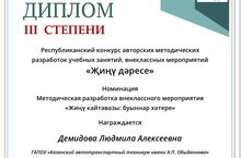 Поздравляем преподавателя Демидову Людмилу Алексеевну с 3 местом в республиканском конкурсе методических разработок в номинации «Эхо Победы: память поколений»!
