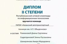 Рахманова Диана, Садретдинова Элина и Шакирзянов Амир заняли 2 место в республиканской олимпиаде по информационным технологиям