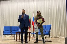 Встреча с Мартой Макаровой - добровольцем, участницей специальной военной операции - прошла сегодня в актовом зале.