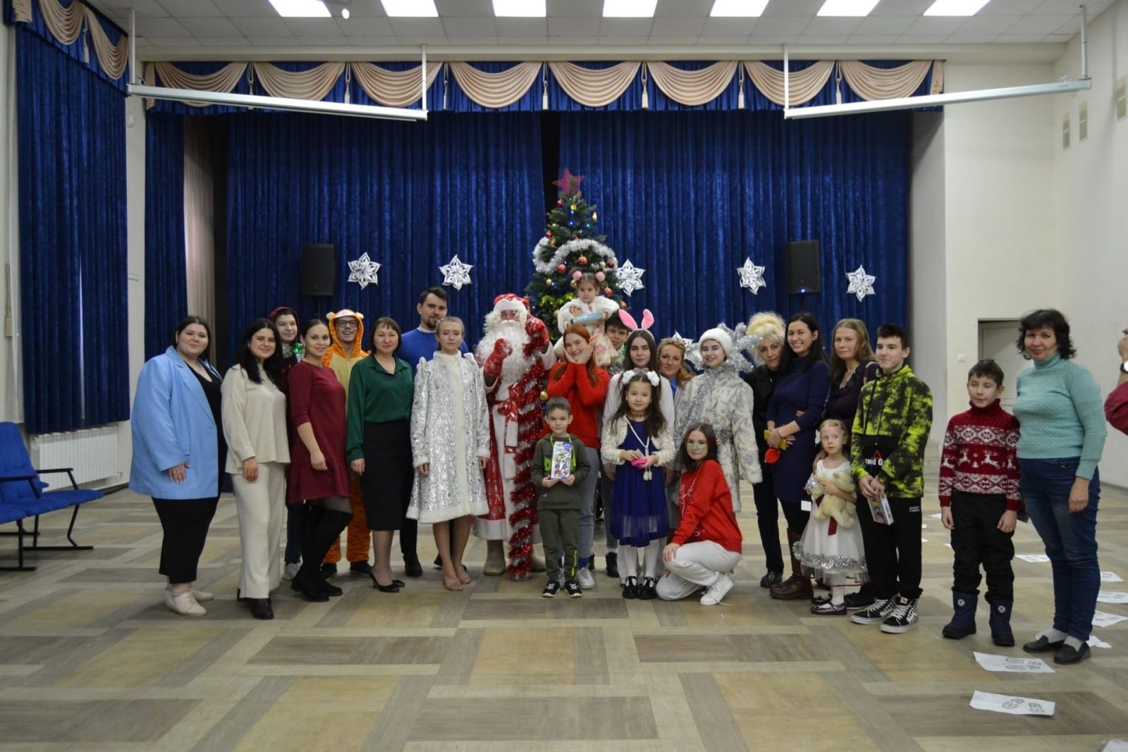 Наши актёры показали удивительную историю со счастливым концом, развлекали ребят веселыми конкурсами и танцами вокруг ёлки, а Дед Мороз подарил каждому подарки. -