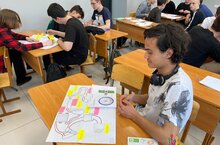 Перед ребятами была поставлена задача по гидравлической или пневматической схеме привода изобразить сам привод и все входящие в него основные и вспомогательные устройства, элементы управления.