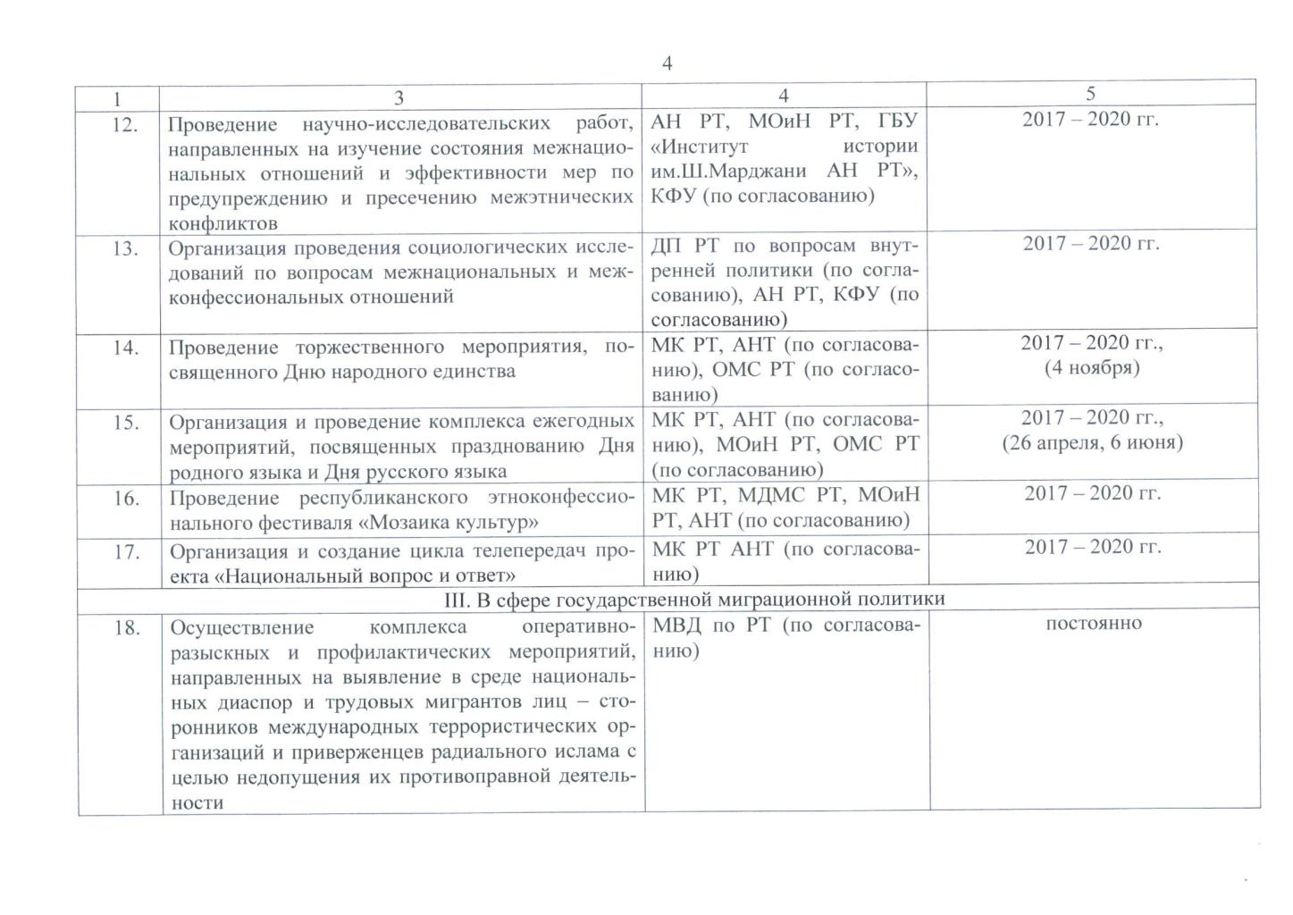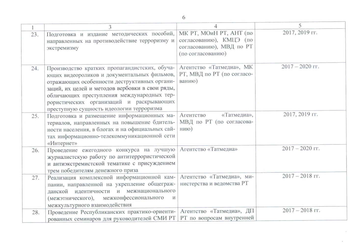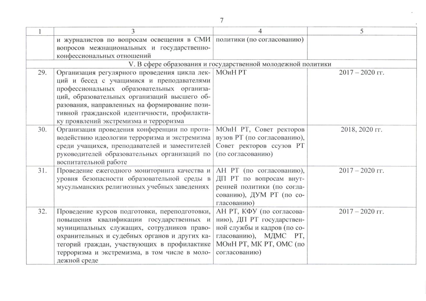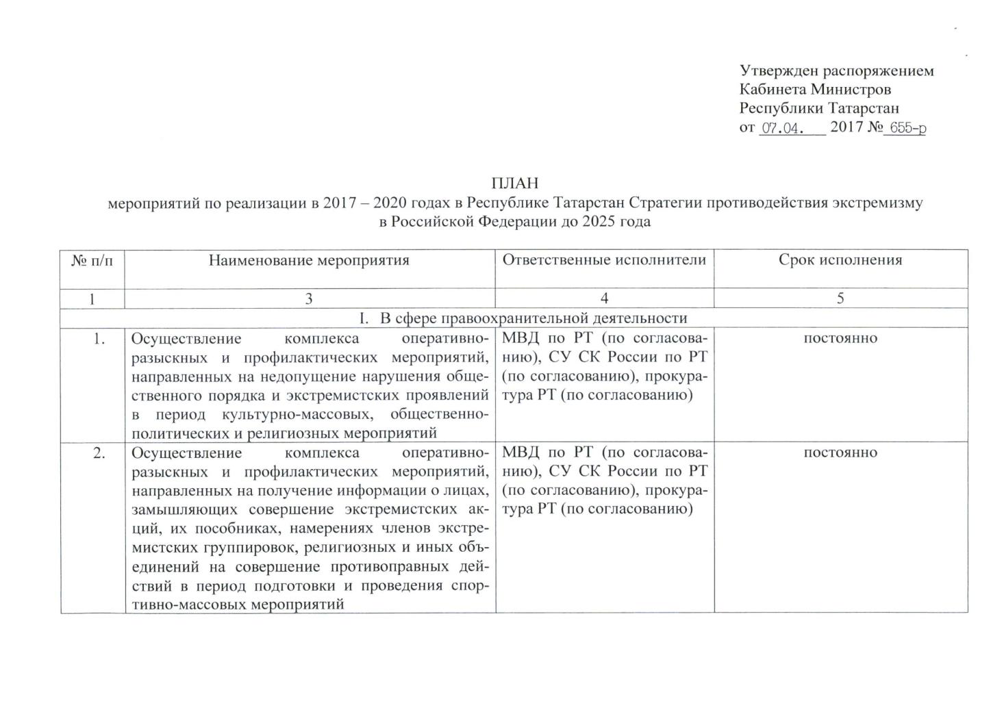 План мероприятий по реализации в 2017-2020 годах в РТ Стратегии противодействия экстремизму в РФ до 2025 года