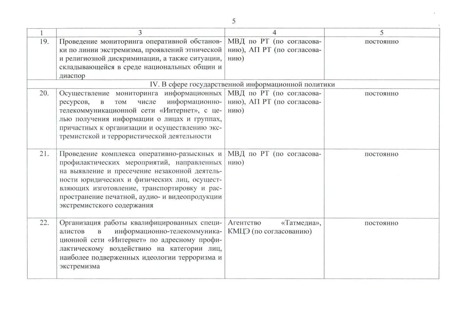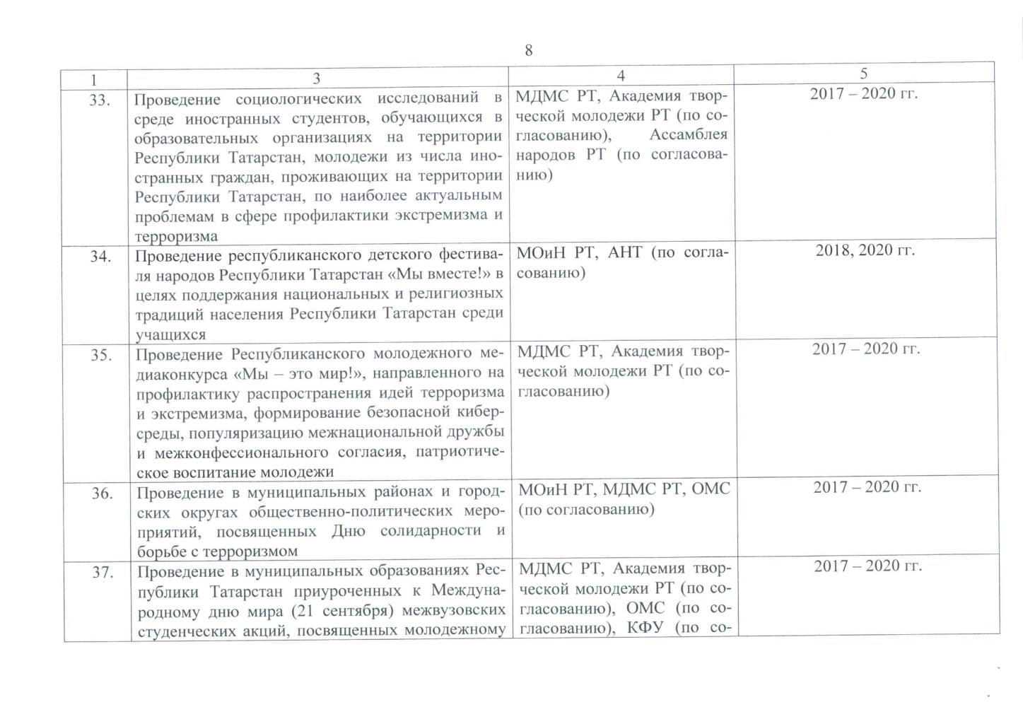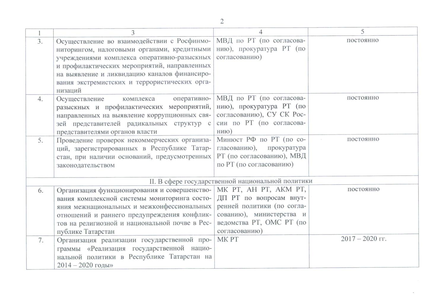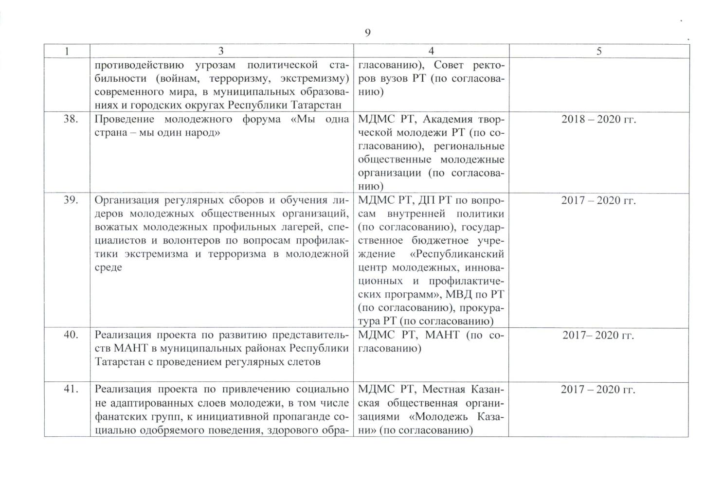 План мероприятий по реализации в 2017-2020 годах в РТ Стратегии противодействия экстремизму в РФ до 2025 года