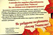 Поздравляем всех учителей, работников сферы образования с этим замечательным праздником. Желаем творческих успехов, здоровья, семейного благополучия.