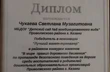 Поздравляем Светлану Музагитовну с Победой в номинации "Лучший макет тренажер" в районном конкурсе макетов "в мире правил дорожного движения" по пропаганде безопасного поведения на дороге