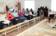 На курсах слушателей познакомили с документацией, рабочей программой музыкального руководителя, мониторингом музыкального развития детей дошкольного возраста. Музыкальный руководитель МБДОУ № 5 Гомонова Любовь Федоровна,высшей квалификационной категории, познакомила слушателей и провела презентацию и мастер-класс из опыта работы "Фонопедический метод развития голоса" на основе программы В.В.Емельянова. -