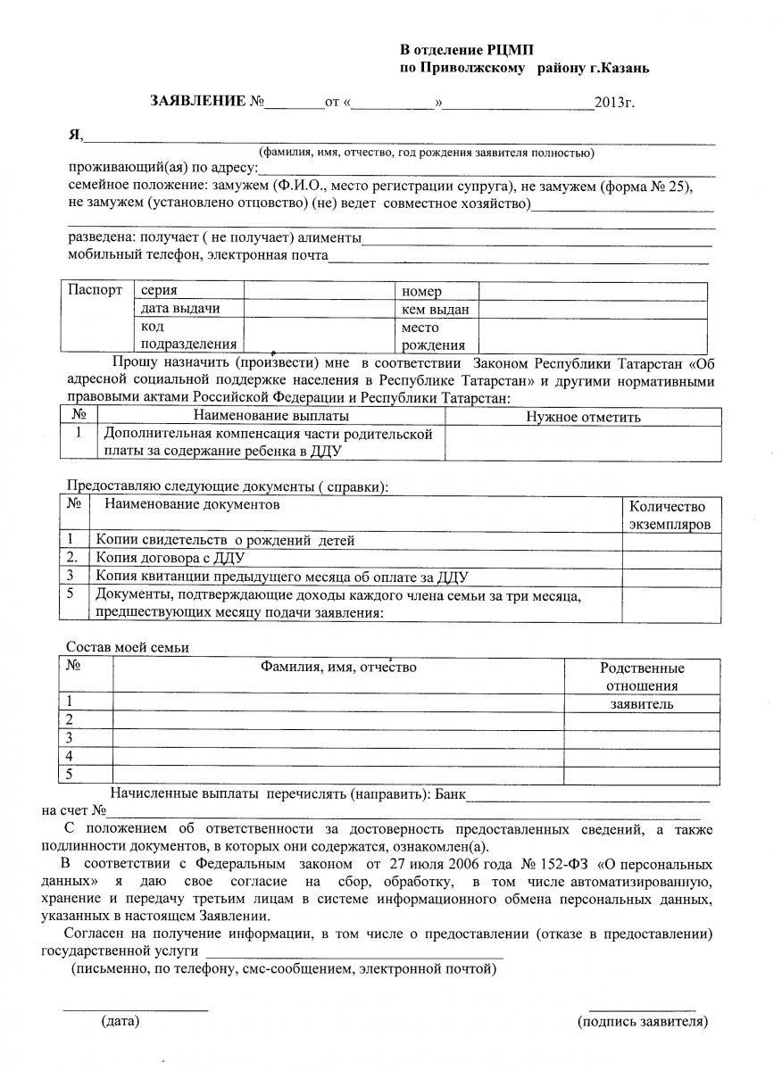Заявление на оформление дополнительной компенсации