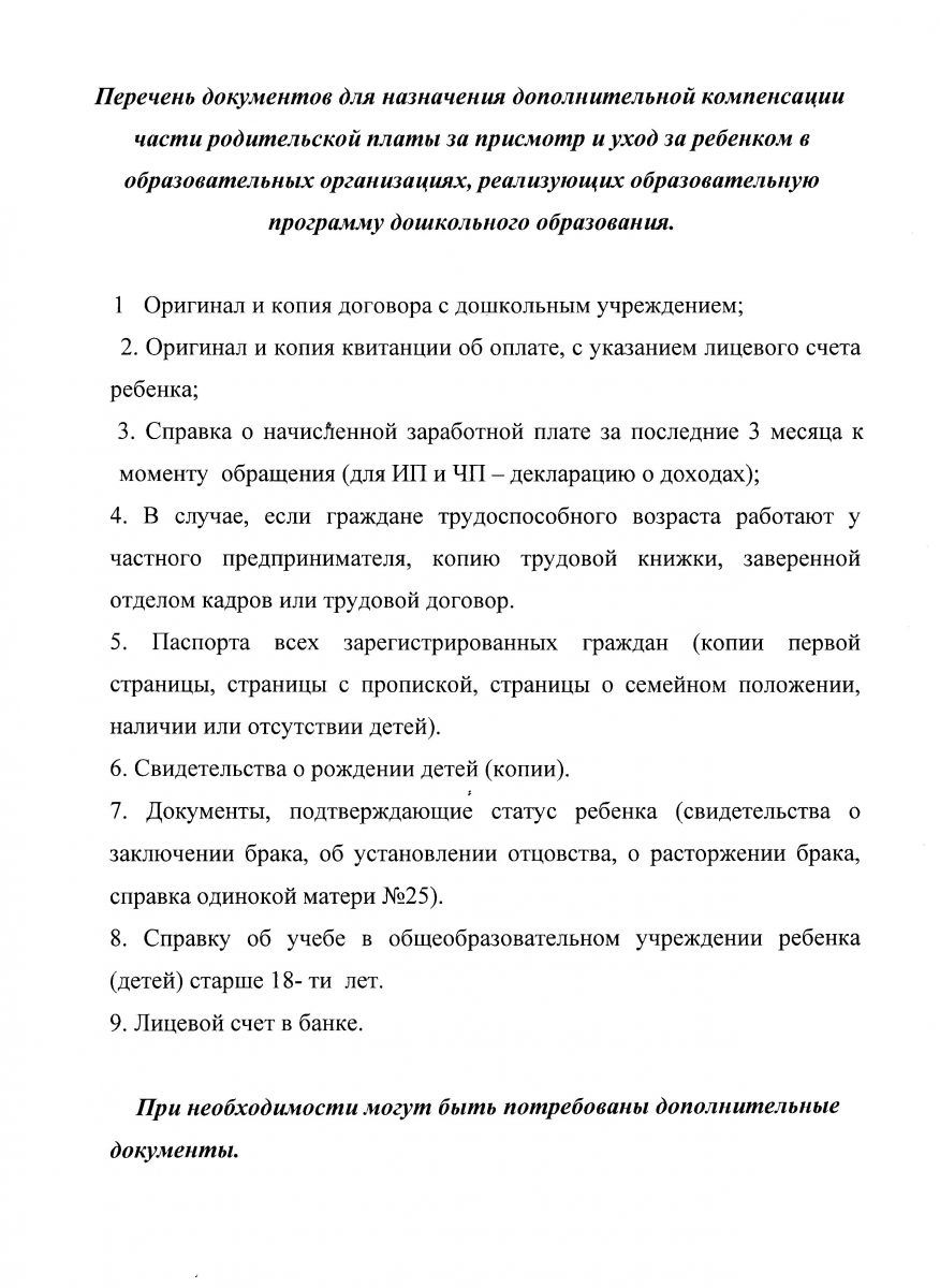 перечень документов, необходимых для оформления дополнительной компенсации
