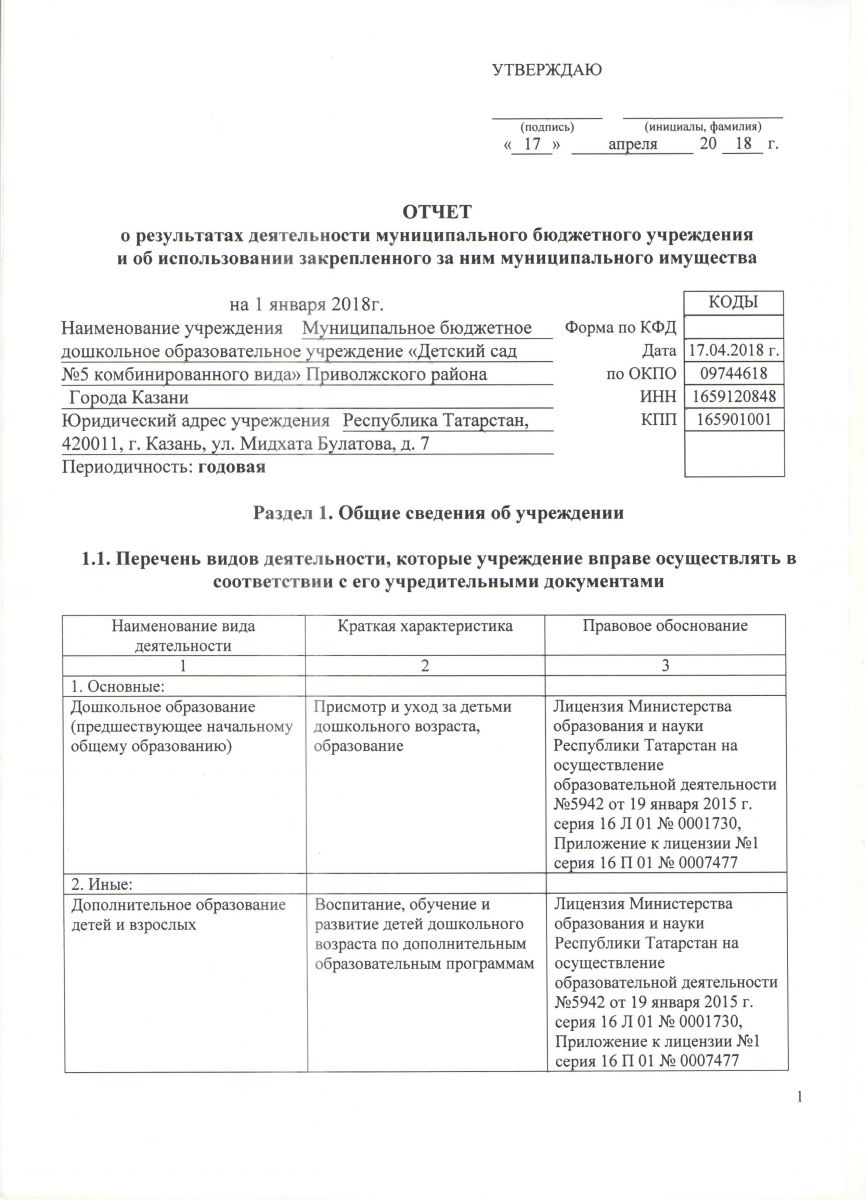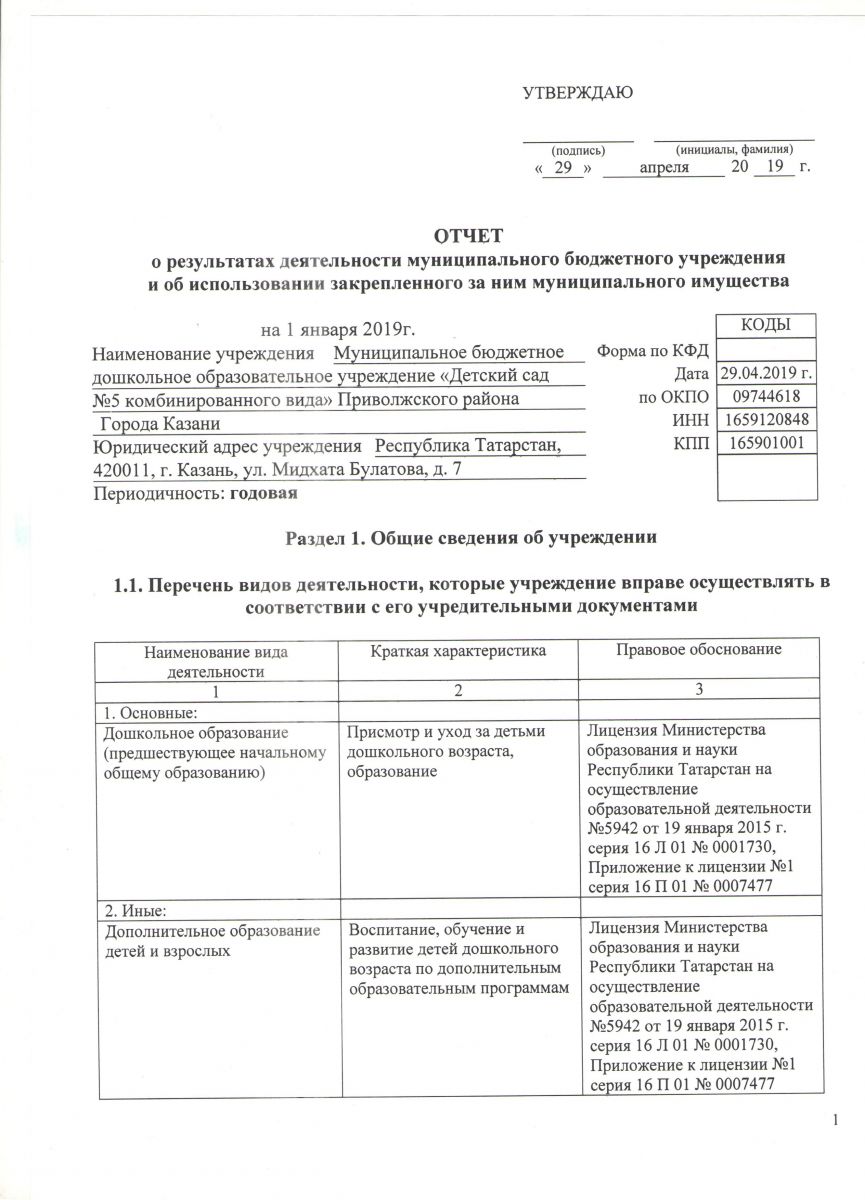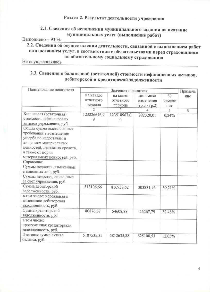 Отчёт о результатах деятельности муниципального бюджетного учреждения и об использовании закреплённого за ним муниципального имущества