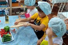Лето подходит к концу. Сделать его для детей еще более запоминающим намерены воспитатели детского сада. С 10 по 14 августа в детском саду "Неделя развлечений". В понедельник -День бантиков, а сегодня- День сладостей. Дети пекут печенье.