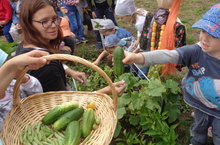 Настала пора сбора первого урожаяв нашем огороде. Решено было сделать это торжественно, в присутствии всех воспитанников и воспитателей детского сада-ведь огород это общее дело, общий труд. Сегодня мы собрали огурцы, зеленый горох и, конечно же зелень-лук и укроп. Восторгу дететй не было предела, все хотели поучаствовать в процессе сбора овощей. А пробывали все во время обеда..