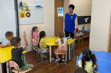 Хайруллина Сагдия Салиховна, ведущий специалист данного отдела, частый гость в нашем детском саду. Вот и сегодня она пришла в гости к ребятам старших групп, провела с ними беседу, напомнив еще раз про правила поведения на улицах города пешеходов и велосипедистов, поиграла с детьми, раздала буклеты - памятки для родителей.