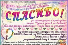 В нашем детско саду в рамках декады была проведена акция "Чужих детей не бывает". Спасибо родителям, что откликнулись на призыв о помощи ребенку-инвалиду.