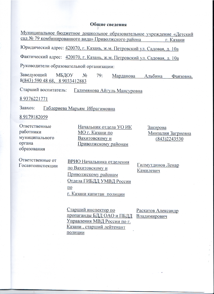 Муниципальное бюджетное дошкольное образовательное учреждение «Детский сад №79 комбинированного вида» Приволжского района г.Казани