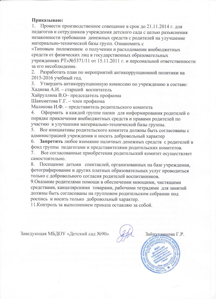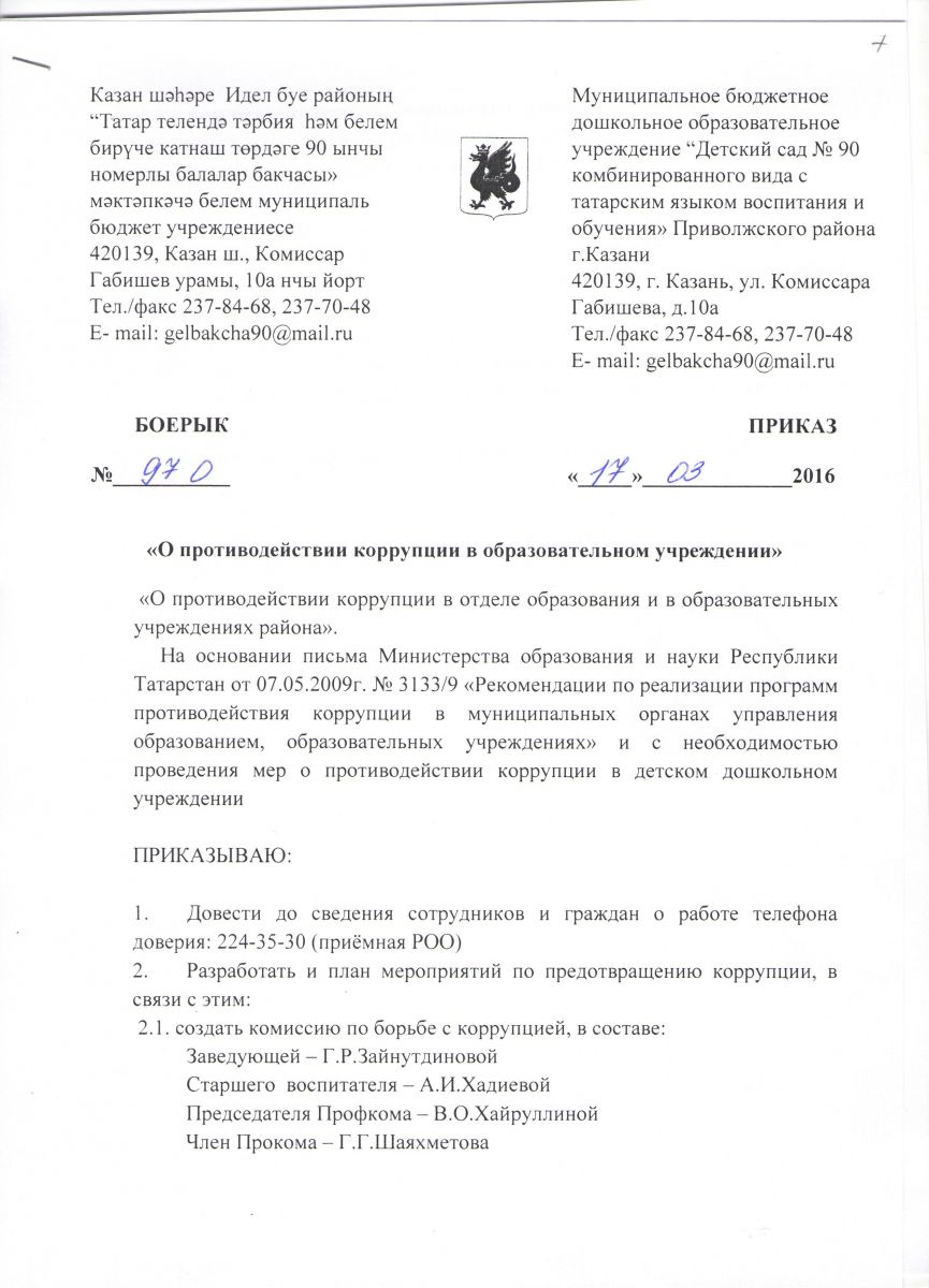 Приказ № 97 МБДОУ "Детскийсад №90" Приволжского района г. Казани "О противодействии коррупции в образовательном учреждении" стр2 стр3 стр4