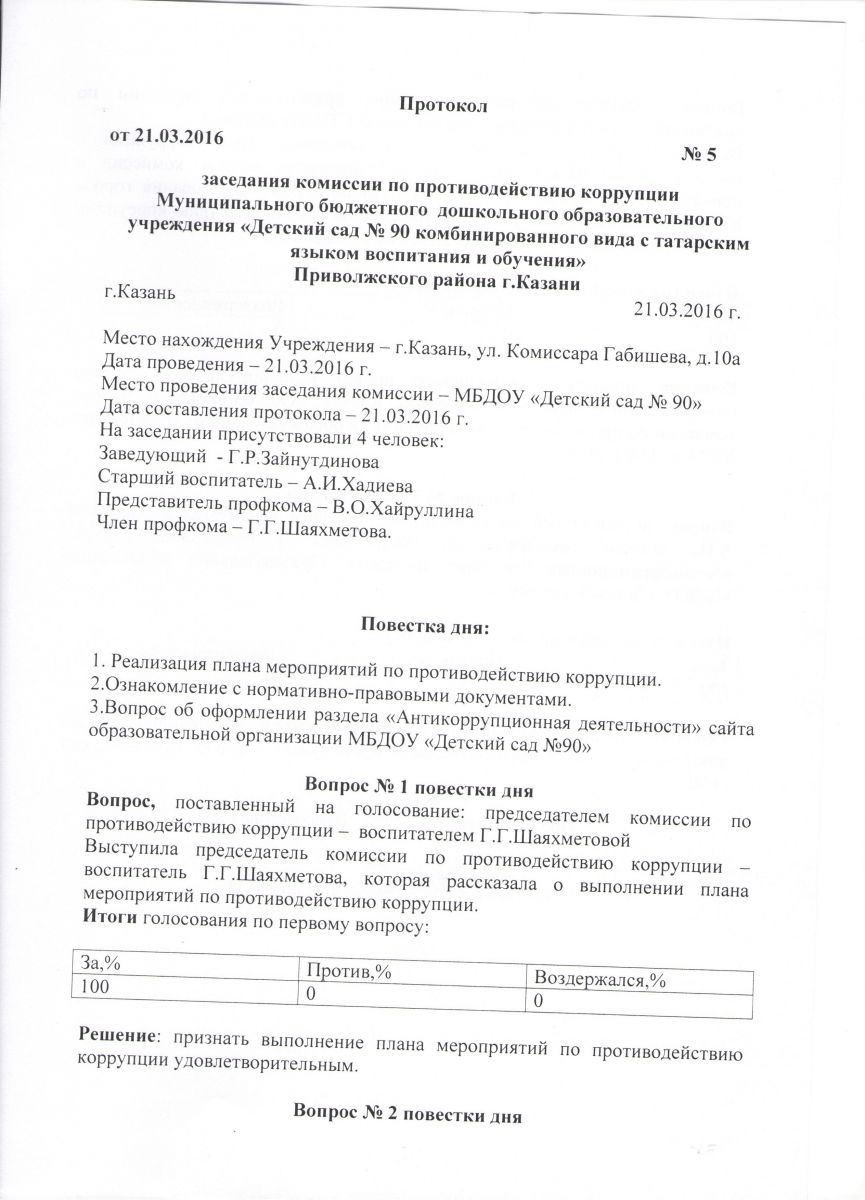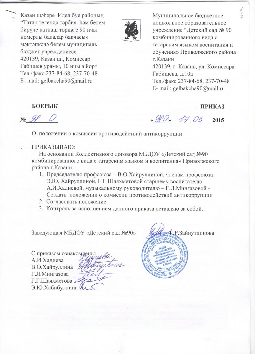 Приказ № 98 МБДОУ "Детскийсад №90" Приволжского района г. Казани "О положении комиссии по противодействию коррупции" стр2 стр3 стр4 стр5