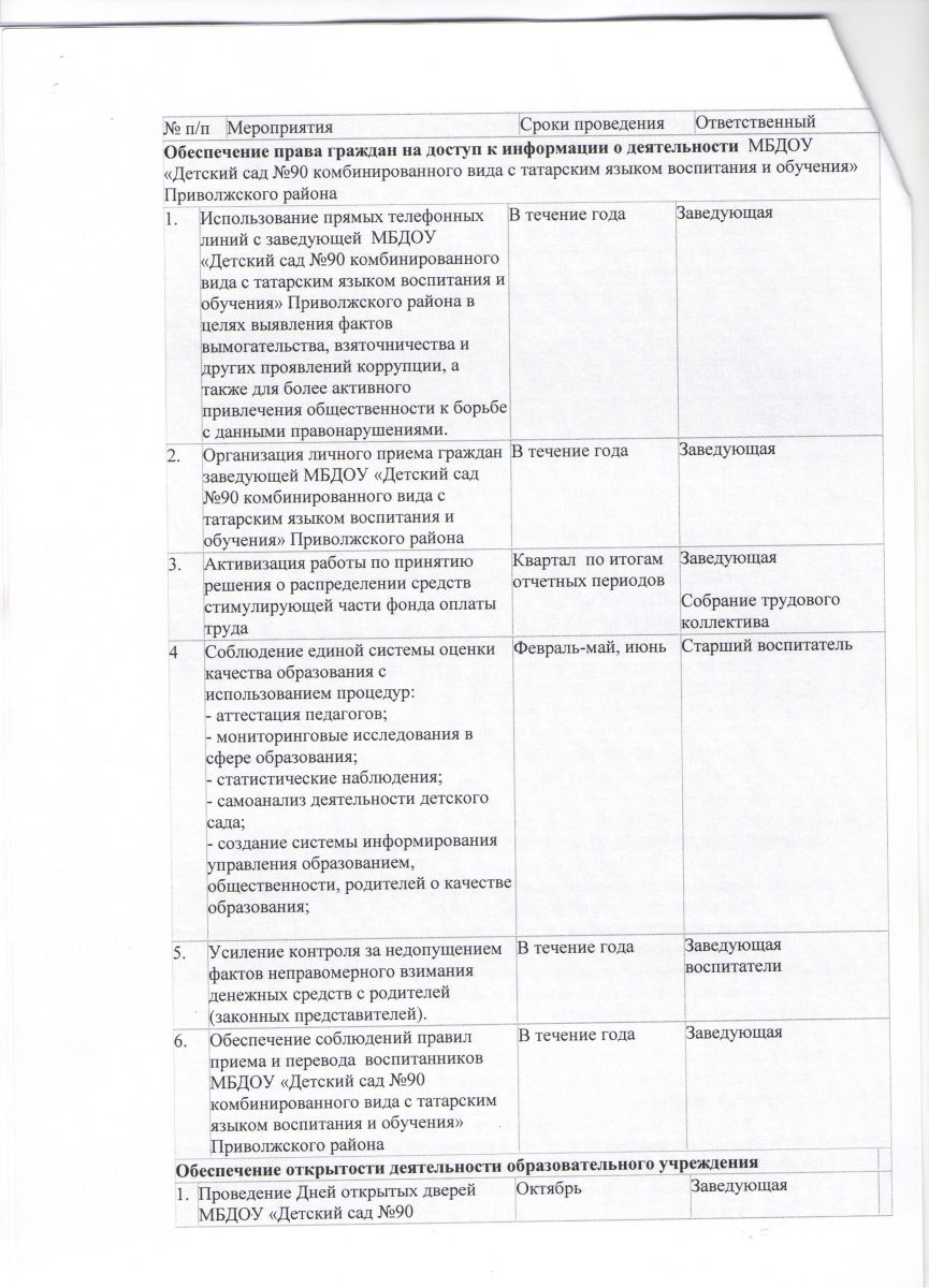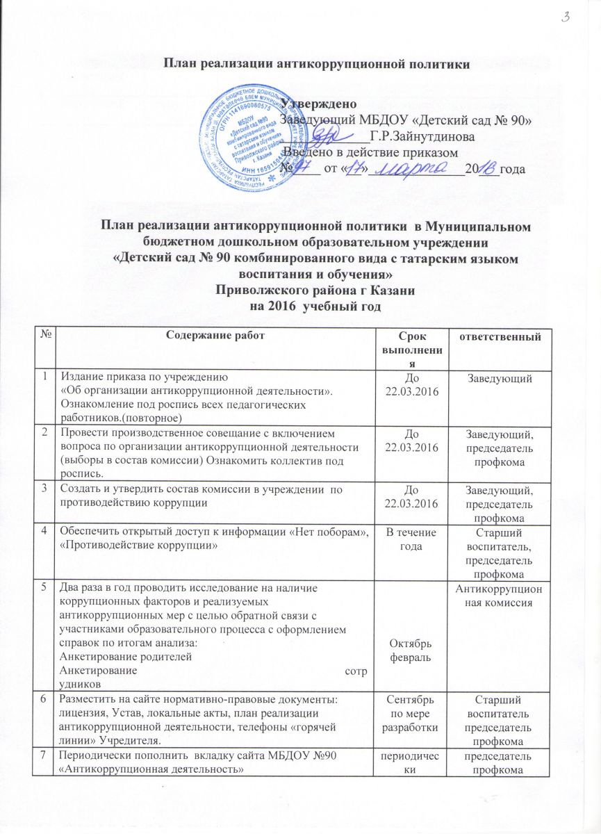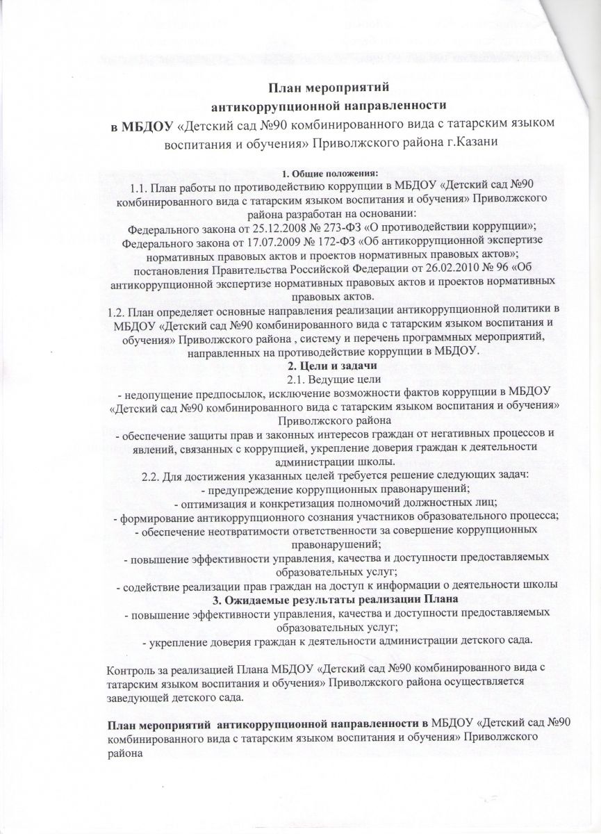 План по реализации антикоррупционной политики МБДОУ "Детскийсад №90" Приволжского района г. Казани на 2015/2016 учебный год стр2