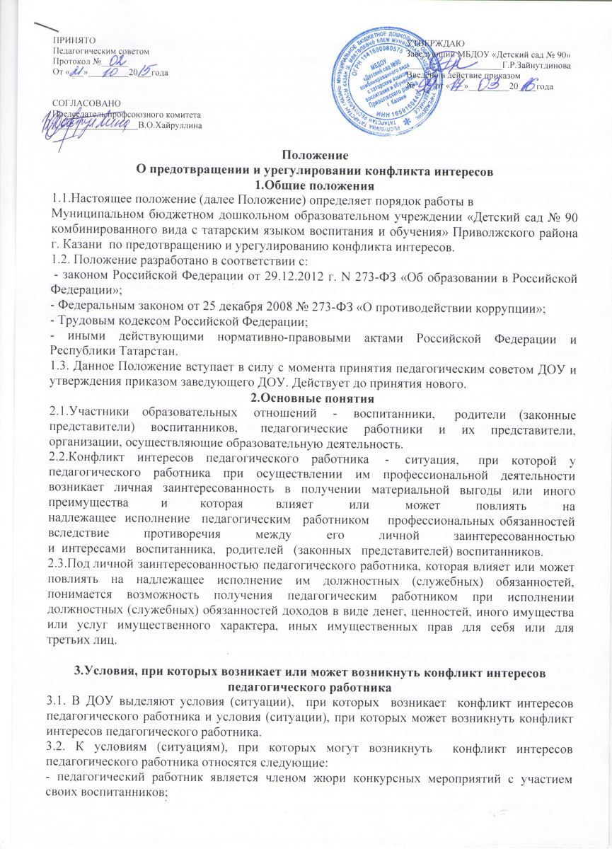 Положение о предотвращении и урегулировании конфликта интересов МБДОУ "Детскийсад №90" Приволжского района г. Казани стр2 стр3