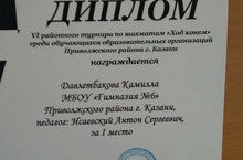 Поздравляем победителей и призеров VI районного турнира по шахматам "Ход конем" Давлетбакову Камиллу и Стехину Арину !