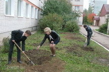 13.10.2012г. Дождь не помешал проведению акции «Зеленый Рекорд». Старшеклассники гимназии высадили саженцы лип. Теперь школьный двор станет ещё краше.