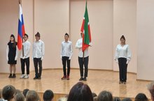 Учебная неделя начался с поднятия Государственных флагов и исполнения Гимнов Российской Федерации и Республики Татарстан. Если в классах начального звена первый разговор о важном касался тем «Для чего я учусь» и «Зачем нам знания», то для учеников 5-11 классов тема звучала так: «Мы – Россия! Возможности – будущее».