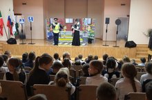 10.09.2021. в рамках месячника безопасности ученики первых классов гимназии встречались с артистами театра Калейдоскоп Отдела пропаганды ГИБДД.