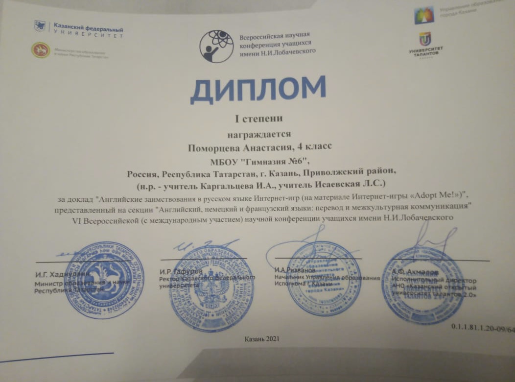 Муниципальное бюджетное общеобразовательное учреждение «Гимназия №6» Приволжского района г. Казани/Казан шәһәре Идел буе районының " 6 нчы Гимназия» муниципаль бюджет гомуми белем бирү учреждениесе