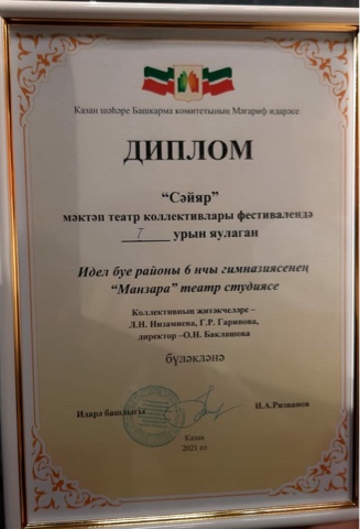 • Муниципальное бюджетное общеобразовательное учреждение «Гимназия №6» Приволжского района г. Казани/Казан шәһәре Идел буе районының «6 нчы Гимназия» муниципаль бюджет гомуми белем бирү учреждениесе