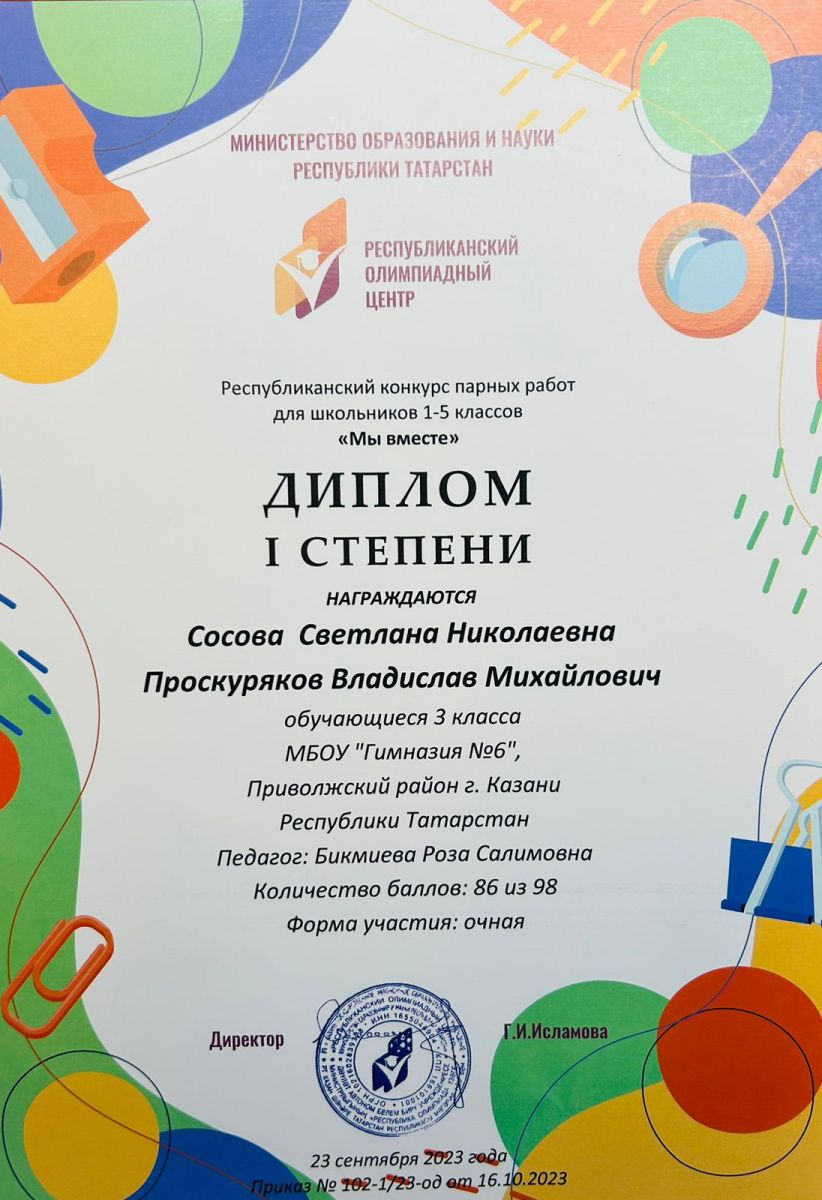 Муниципальное бюджетное общеобразовательное учреждение «Гимназия №6» Приволжского района г. Казани/Казан шәһәре Идел буе районының " 6 нчы Гимназия» муниципаль бюджет гомуми белем бирү учреждениесе