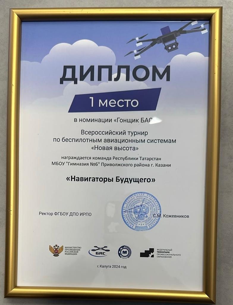 Опубликовано: 07.12.2024В Федеральном технопарке профессионального образования г.Калуга 5–6 декабря 2024 года состоялся Всероссийский турнир по беспилотным авиационным системам «Новая высота», в котором приняли участие школьники и студенты колледжей из 30 регионов страны. Мероприятие организовано в рамках федерального проекта «Кадры для беспилотных авиационных систем» национального проекта «Беспилотные авиационные системы». В составе команды от нашей гимназии в турнире приняли участие Нургалиев Булат, ученик 9Д класса, и Введенский Родион, ученик 10А класса инженерного лицея для одаренных детей им.А.Н. Туполева. Поздравляем ребят и их педагога - наставника, учителя информатики гимназии 6 Мухаметшину Гульфию Гайязевну с победой в турнире! Так держать!