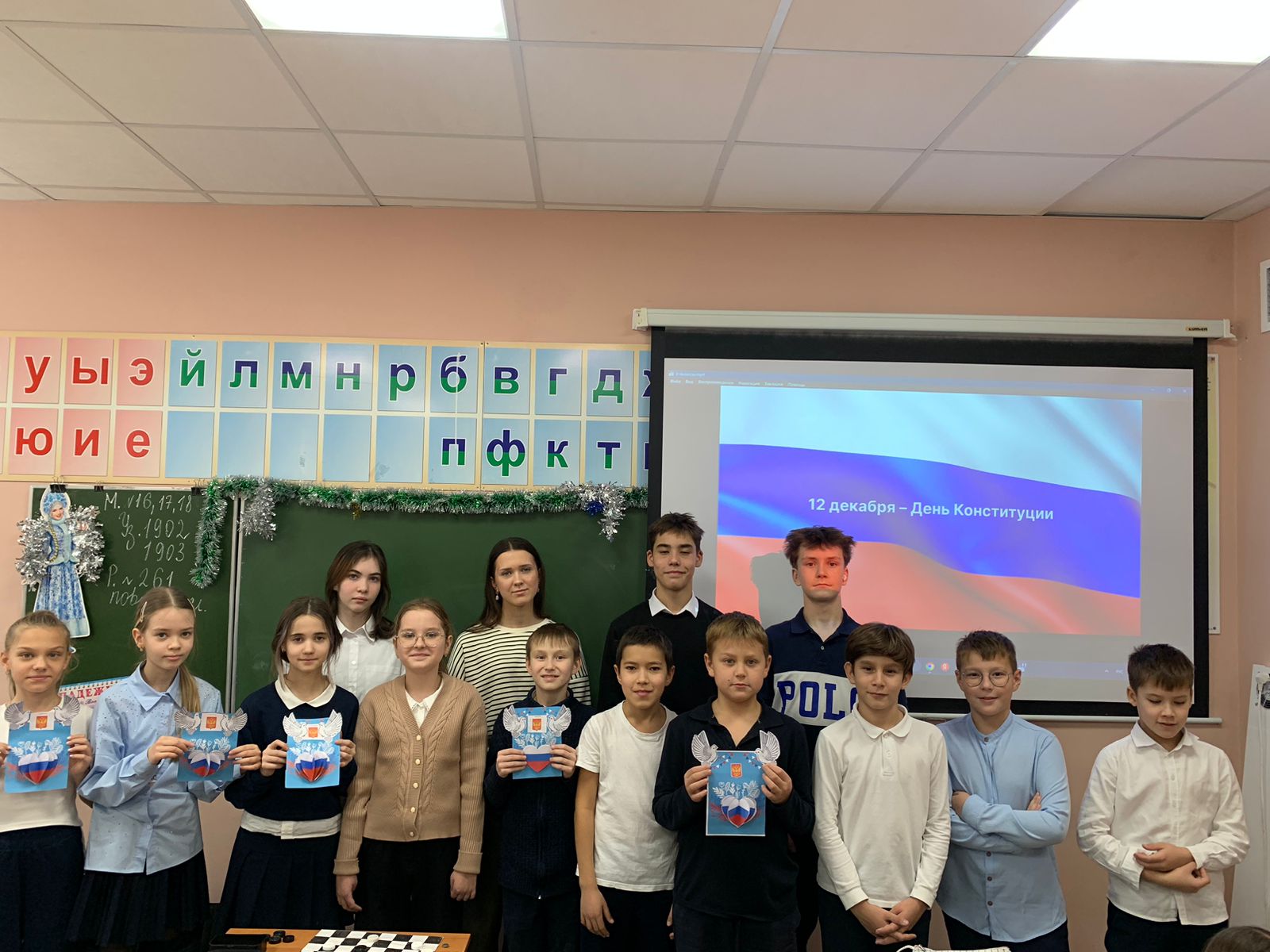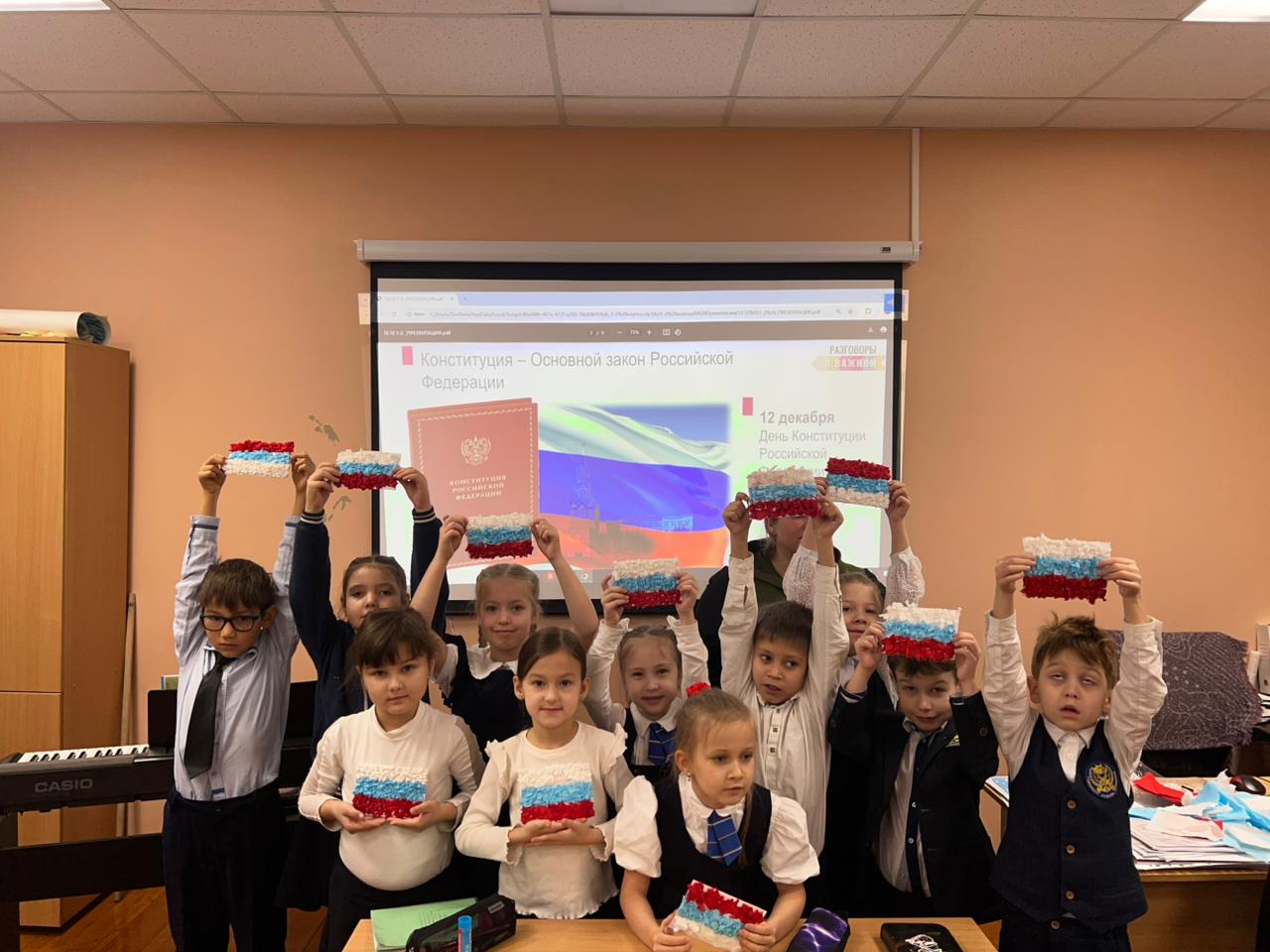 Опубликовано: 12.12.202412 декабря мы отмечаем одну из самых важных дат в истории нашей страны-День принятия Конституции Российской Федерации. В преддверии этой значимой даты Советники по воспитанию вместе с ребятами из «Движения Первых» провели мастер-классы в начальной школе, также оформили информационный стенд.