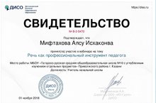 Учитель 1а класса, Мифтахова Алсу Исхаковна, приняла участие в вебинаре на тему "Речь как профессиональный инструмент педагога".