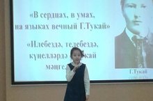 Поздравляем Фадееву Софию с 1 местом в районном конкурсе чтецов "Илебездә, телебездә, күңелләрдә Г.Тукай мәңгелек" ( чтение произведений Тукая на тат яз) посвященный творчеству татарского поэта Г. Тукая. (Педагог Зиатдинова Н.В.)